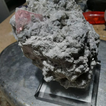 Fluorite rose du massif du Mont Blanc, Argentière, Haute-Savoie. Plus grande arête 11 mm.7.3 x 5.6 x 4.9 cmRéférence :