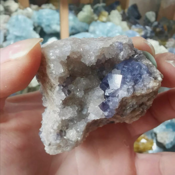 Fluorite bleue de la mine de Marsanges, Haute-Loire 43, France. Plus grande arête 3.5cm.6 x 5.5 x 3 cmRéférence :