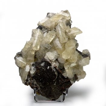 Pièce provenant d'un gisement classique de la minéralogie américaine, la mine Sweetwater dans le Missouri aux États-Unis.Elle met en valeur des cristaux prismatique de calcite sur une gangue portant de la chalcopyrite iridescente.Ce spécimen mesure 11,1 cm de long pour 9,4 cm de large et 4,5 cm...