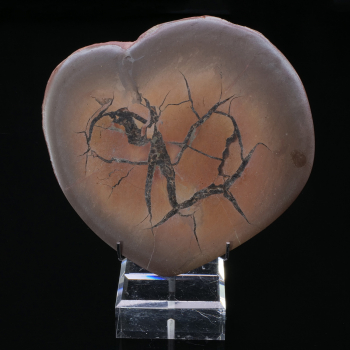 Septaria polie sur les deux côtés, les arêtes sont brutes. Découverte et polissage 1980. Etiquetée Lorraine.11,90 x 11,60 x 2 cmRéférence : 3932