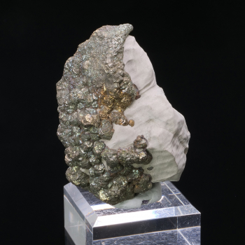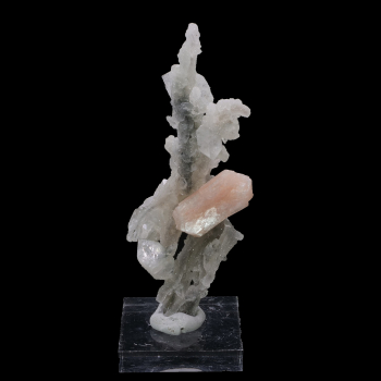 Très bel ensemble aérien et esthétique présentant un beau cristal de Stilbite associés à des Apophyllite lustrées le tout sur une Calcédoine scintillante. Spécimen provenant de Jalgaon en Inde.13 x 5,40 x 3,30 cmRéférence : 3944