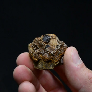 C'est l'histoire d'un arbre qui en tombant mis au jour une série de bloc ferreux. Les blocs encore en place révélèrent de fines fissures contenant parfois d'originales pyrites penta-dodécaédriques. Pyrite sur sidéro-ankérite.3 x 2,5 x 3 cm0050-VL