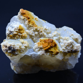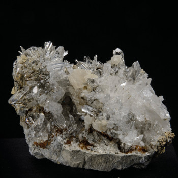 Petite plaque de Quartz très limpide, Calcite et Limonite provenant de la découverte d'un nouveau site faite en 2018. Légère inclusions de schiste à la base de certains Quartz.7 x 5 x 6 cm0084-VL