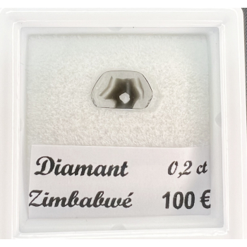Description : NOM: Diamant LOCALITE : Zimbabwé TAILLE : 7.5 x 5 x 0.5 mm RESUME de la pièce : Diamant avec inclusions de carbone