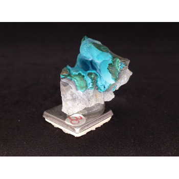 Petite pièce de Chrysocolle toute mignonne et très intéressante minéralogiquement. sur ce spécimen, on voit bien la cristallisation secondaire du Chrysocolle sur la Malachite. Le contraste est vraiment sympathique.Chaque pièce présentée est photographiée sous de nombreux angles différents pour...