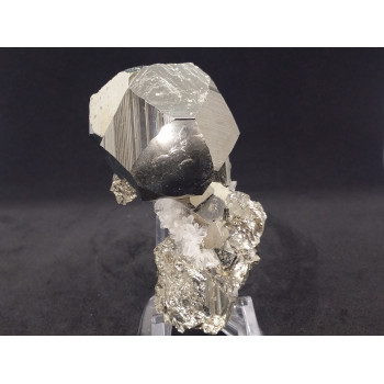 Cette belle macle de Pyrite repose sur son piédestal composé de Cristal de Roche et de petits octaèdres de Pyrite. Ce magnifique spécimen aérien n'attend que de côtoyer d'autres pièces de collection. Attention, éclat et brillance au rendez-vous.Chaque pièce présentée est photographiée sous de...