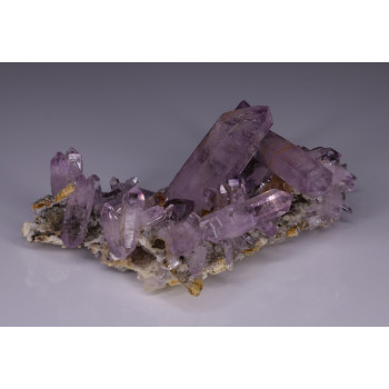 Trois types de Quartz sur la même pièce : hématoïde brillant, hématoïde satiné et a inclusion d'Hématite. Jolie contraste avec la gangue de quartzite !19 x 15 x 10 cmRéférence : 0123