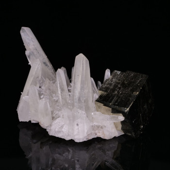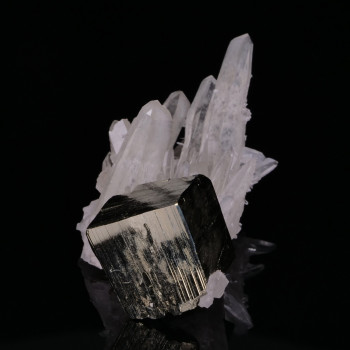 Superbe cube de Pyrite bien cristallisé associé à des Quartz du Pérou.7,15 x 4,70 x 4,35 cmRéférence : 0376