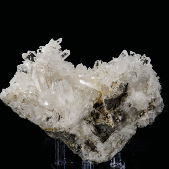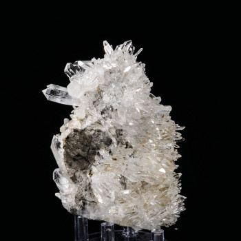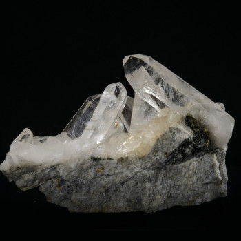 Groupe de belles pointes de Quartz sur une étroite gangue de Gneiss. Une pièce provenant elle aussi de la "Canicule Pocket" (voir histoire en description de la pièce 01).11 x 8 x 4,5 cm0027-VL