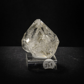 Pièce typique de la mine du Beix. Le cristal de fluorite mesure 3.8*2.8cm. il est intact avec un aspect satiné. La transparence permet de voir les morceaux de quartz emprisonnés dans le cristal. La gangue de quartz légèrement oxydée est concave et rajoute de l'intérêt à ce caillou. Le contraste...