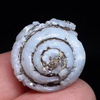 fossile d'Hélix Ramondi épigénisé en opale CT. Cette pièce provient du secteur de la mine des rois vers Dallet. le diametre est de 1.7cm . la couleur gris bleu est trés correcte!1,7 cmRéférence : DAL2