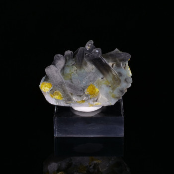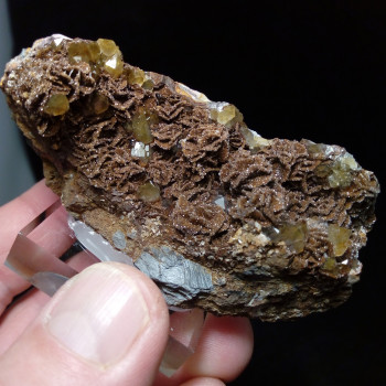 Rosettes de Sidérite recouvertes de micro Quartz et associées a des Quartz citrins. Très brillant et super esthétique ! 8 x 4 x 3 cm0037-SMCLS