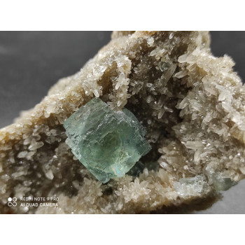 Un cube unique au millieu de petits cristaux de quartz8 x 6 x 5 cm0043-MDSA