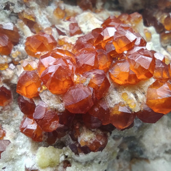 Belle association de grenats spessartites oranges vifs et quartz fumé9 x 8 x 5 cmRéférence : 0097