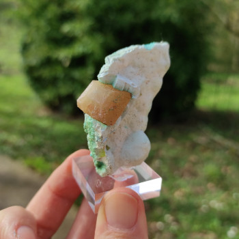 Pièce intéressante associant une topaze, des cristaux de muscovite, sur une gangue de cleavelandite. Pièce provenant de la région du Shigar au Pakistan.Ses dimensions sont de 5 x 4,6 x 3,3 cm.Le poids de ce spécimen est de 71 grammes.Photos supplémentaires et commande en ligne sur le site...