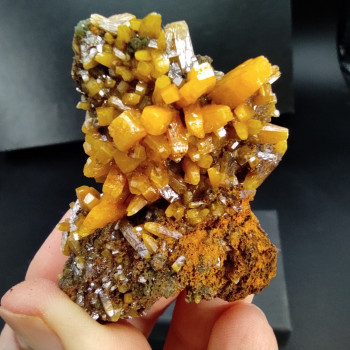 Superbe échantillon de Wulfénite cristallisation bipyramidale provenant de la mine de la Ojuela, les cristaux sont présents sur toutes les faces du spécimen.9 x 7 x 5 cmRéférence : 0188