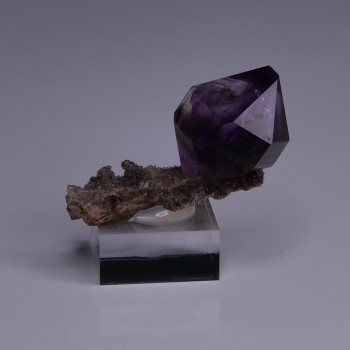 Cristal d'améthyste sur une orthoze rose, à noter le petit cristal sur le coté est incomplet7 x 7 x 4 cm0047-MDSA