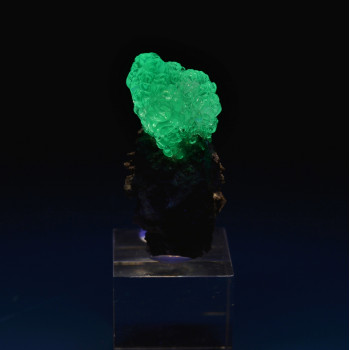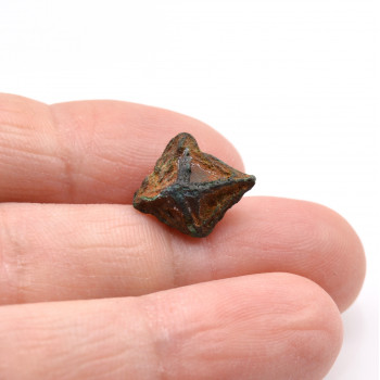 Cristal de cuprite dont subsistent essentiellement les arêtes pseudomorphosées en malachite. 1,5 x 1,2 x 0,9 cm. Référence : 1521-LM2T
