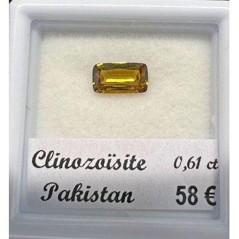Description : NOM : Clinozoïsite LOCALITE : Pakistan TAILLE : 7.2 x 4.1 mm RESUME de la pièce : fait partie du groupe des épidotes
