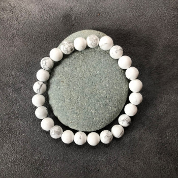 Bracelet Howlite composé de 24 perles de 8 mm montées sur élastique multifibres permettant une meilleure résistance. Taille : 17 - 19 cm (selon s'il est porté ajusté ou lâché)