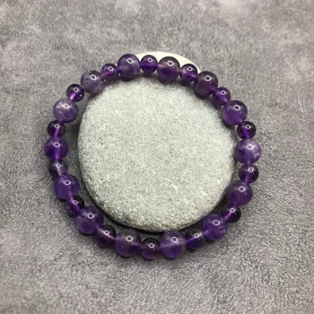 Bracelet Améthyste composé de perles de 8 mm alterné avec des perles de 6 mm montées sur élastique multifibres permettant une meilleure résistance.Taille : 15 – 16.5 cm (selon s'il est porté ajusté ou lâché