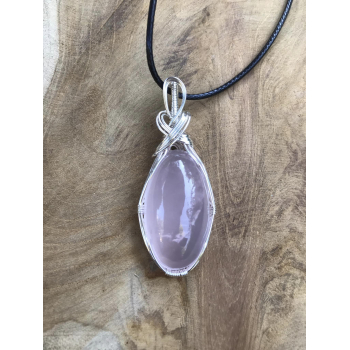 Pendentif Quartz rose d'une très belle qualité, très belle transparence, sertissage sur fil de cuivre argenté (garanti sans plomb, sans nickel et sans cadmium). Provenance de la pierre : Brésil vendu avec cordon polyester ciré noir, fermeture pince de homard et chainette d'extension