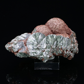 Clinochlore de Russie formant une belle architecture avec un recouvrement d’oxydes de fer partiel. Très joli spécimen typique de sa localité à la mine Korshurovskiy.8,90 x 3,90 x 5,30 cmRéférence : 3393