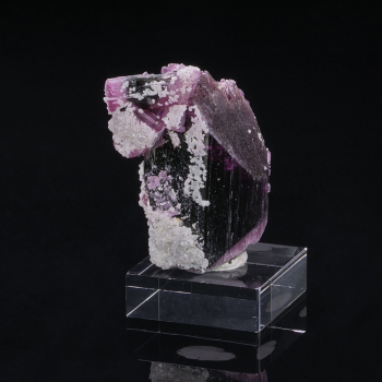 Très beau cristal de Tourmaline pluri centimétrique avec la terminaison rose très gemme. Il y a d’autres cristaux associés mais qui n’ont pas été formé dans le même sens. Les couleurs de ce spécimen sont encore plus mises en avant lorsque nous l’éclairons en rétroéclairage ! Tourmaline provenant...