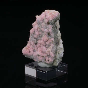 Rosettes de Rhodochrosite associées à de la Sphélarite et des Quartz qui rendent l’ensemble bien brillants. Belle couleur bien prononcée pour la Rhodochrosite rose. Spécimen provenant de Madan en Bulgarie.5,80 x 4,50 x 1,60 cmRéférence : 4493