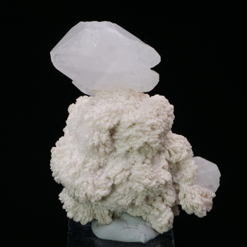 Quartz blanc opaque bien formé perché en haut de cristaux de Cleavelandite blancs également, provenant du Pakistan.10,60 x 7,60 x 4,70 cmRéférence : 3531