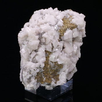 Rhomboèdres de Dolomite blanche immaculée sur gangue de Pyrite massive qui offre une belle brillance à la pièce.