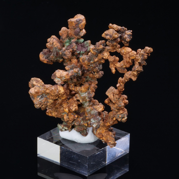 Très belle architecture pour ce Cuivre aérien provenant de la mine Onganja en Namibie. Présence d’un cristal de Calcite lové dans le Cuivre.6,20 x 5,30 x 3,70 cmRéférence : 3418