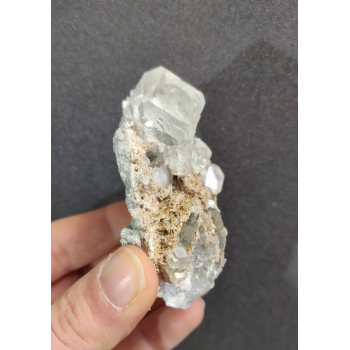 Paire de cristaux accolés d'apatite gemme associée à de la pyrite et du micros cristaux de quartz.Cette ancienne pièce provient de la mine Julcani, Province d'Angaraes, Huancavelica, Pérou.Elle mesure 4,3 cm de long pour 3,5 cm de large et 2,1 cm d'épaisseur (apatite 1,2 cm de long).Son poids est...
