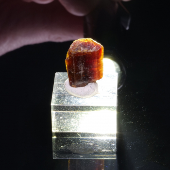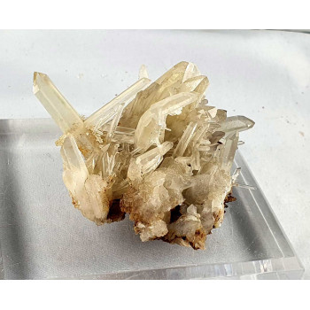 Pointe de citrine avec une couronne de petits cristaux entourent la pointe principale.Ce spécimen provient de Lwena, situé dans la région de Katanga, République du Congo.Cette pièce affiche des dimensions de 7,4 x 3,7 x 3,4 cm.Le poids de cet échantillon est de 162 grammes.Mesures hors...