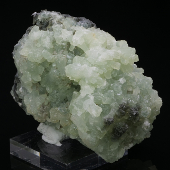 Cristaux de Prehnite formant comme des papillons d’un vert clair brillant, pour certains inclus d’Actinolite qui colorent les cristaux en vert très foncé. Spécimen provenant de Boulemane au Maroc.9,30 x 7,60 x 6,70 cmRéférence : 3998