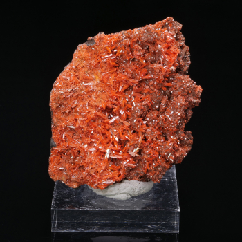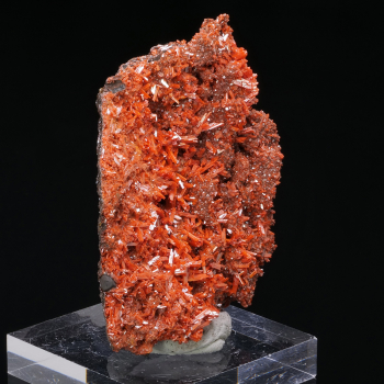 Plaque couverte de cristaux de Crocoïte bien formés et de belle qualité présentant une superbe couleur orange flamboyant. Cristaux de Crocoïte sur matrice provenant de la mine Adélaïde en Australie.7,90 x 6,10 x 2,50 cmRéférence : 4144