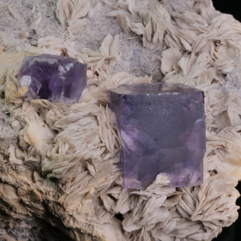 Deux cubes de Fluorite violet gemmes qui laissent apparaître les cristaux de Baryte à l’intérieur. Le plus grand cristal mesure 2,50 x 2,30 x 2,20 cm. Belle pièce provenant de Berbès en Espagne.10 x 9,70 x 7,20 cmRéférence : 2738