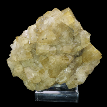 Grand spécimen en 3 dimensions, cristallisé de toutes parts. Il présente des cubes d’une couleur jaune d’or superbement formés, avec comme association de la Pyrite qui illumine l’ensemble. Fluorite provenant de la mine El Hammam au Maroc.17,60 x 15,80 x 6,90 cmRéférence : 3470