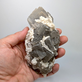 Échantillon de fluorite provenant du Balouchistan, Pakistan.Les cristaux sont cubiques et partiellement recouverte de calcite blanche.Cette pièce mesure 13 cm de long pour 6 cm de large et 3 cm d'épaisseur.Elle pèse 383 grammes. Photos supplémentaires et commande en ligne sur le site DGminéraux...
