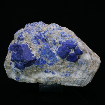 Nombreux cristaux de Lazurite bleu roi intense perchés sur leur gangue de Calcite blanche immaculée qui offre un beau contraste de couleur.7,80 x 4,60 x 4,20 cmRéférence : 3670