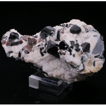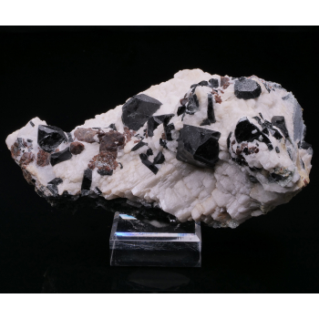 Spinelle noirs bien formés associés à des cristaux de Clinohumite orange intense, le tout sur gangue blanche immaculée qui offre un superbe contraste de couleur.16,20 x 11 x 8,80 cmRéférence : 2893