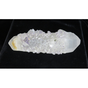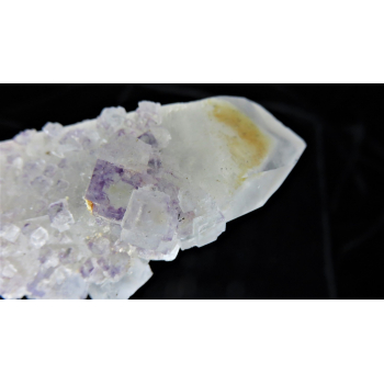 fluorine violette en cubes, sur un quartz bi-terminé, avec fantomes, pas courant11 x 3 x 2 cmRéférence : 0464
