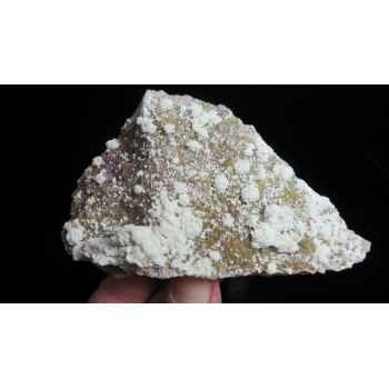Rare fluorine dans le Jura, Découverte perso dans le massif de la Serre, printemps 2022, fluorine milimetriques jaune et violette, associées a de joli ponpoms de baryte blanche13 x 6,5 x 3,5 cmRéférence : 0446