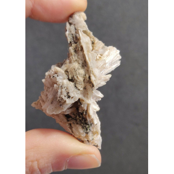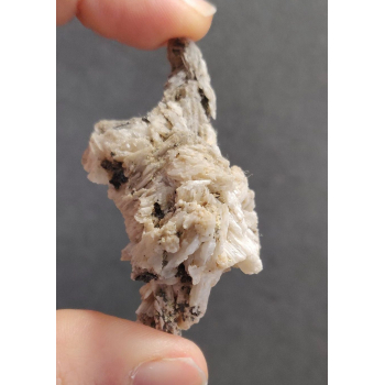 Très beau spécimen de cristaux de Ferro-Actinolite associés à des cristaux de Cleavelandite qui offre un bel ensemble. Pièce aérienne et esthétique.5,14 x 3,25 x 2,75 cmRéférence : 0382