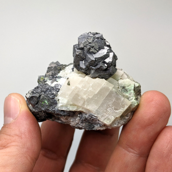 Classique échantillon d'épidote et albite sur gangue.Cette pièce provient de Saint-Véran, Hautes-Alpes, Provence-Alpes-Côte d'Azur, France.Elle mesure 8,1 cm de long pour 6,5 cm de large et 3,3 cm d'épaisseur.Son poids est de 243 grammes. Photos supplémentaires et commande en ligne sur le site...