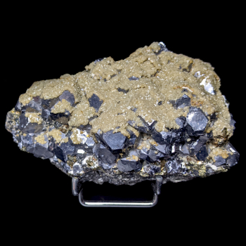 Cristal de Pyrite associé à de la Marmatite noire brillante, provenant d'Italie.4,40 x 3,40 x 2,70 cmRéférence : 2325