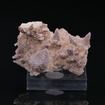 Très belle plaque de Calcite en scalénoèdres recouverte d’Yttrofluorite. Il y a une grosse présence de cristaux d’Yttrofluorite qui donne cette couleur violette très prononcée. L’Yttrofluorite est une variété de Fluorite riche en Yttrium (violet) qui réagit fortement aux UV courts. Spécimen rare...