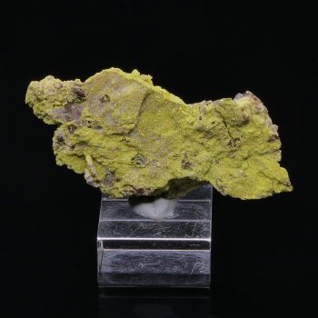 Spécimen de Meta-Autunite jaune fluo qui réagit fortement aux UV. Attention, pièce uranifère.2,90 x 2,70 x 1,40 cmRéférence : 3032