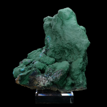 Très grande pièce de Malachite verte homogène et à l’aspect doux qui recouvre et laisse entrevoir à certains endroits du Chrysocolle. Spécimen provenant de la célèbre Mine de l’Etoile du Congo.19,80 x 15,40 x 15,40 cmRéférence : 3323