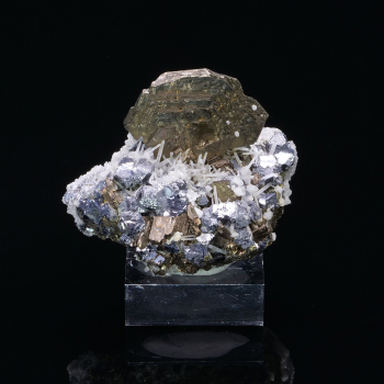Gros cristaux trapus de couleur jaune mordoré avec de petits Quartz sur le dessus qui apportent de la brillance. Les cristaux sont lustrés et sont mis en valeur par leur socle sur-mesure. Découverte de 2015 dans la mine de Mésage en France.4,50 x 4,50 x 4 cmRéférence : 3125